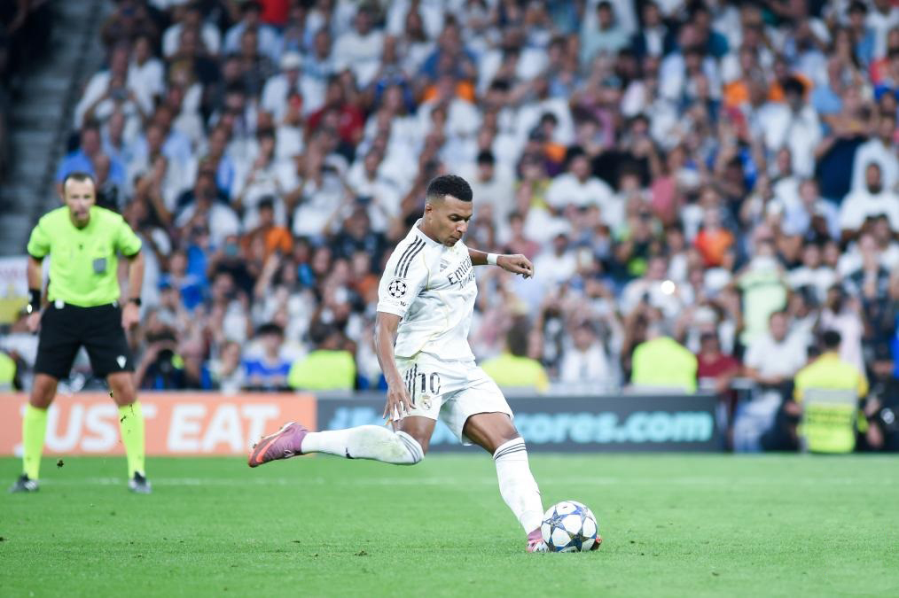 9月16日,皇马球员姆巴佩在罚点球。新华社