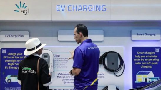 3月7日,在澳大利亚悉尼举行的家庭能源与电动车展上,工作人员为参观者介绍电动汽车充电设备。新华社
