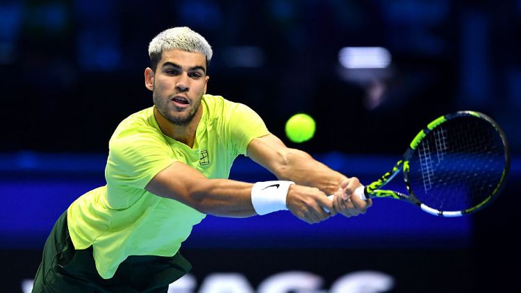 11月13日,阿尔卡拉斯在比赛中。ATP官微