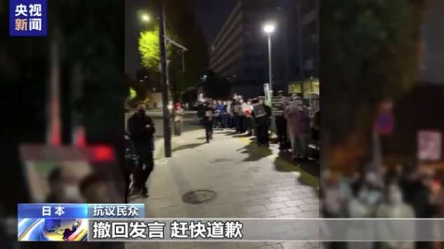 抗议者在现场高喊“撤回发言,赶快道歉”“高市下台”等口号,要求高市早苗辞职下台。