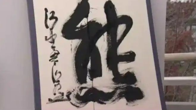 今年的年度汉字公布仪式照例在清水寺举行。当日,清水寺住持森清范用特大号毛笔在一张和纸上挥毫写就“熊”字。