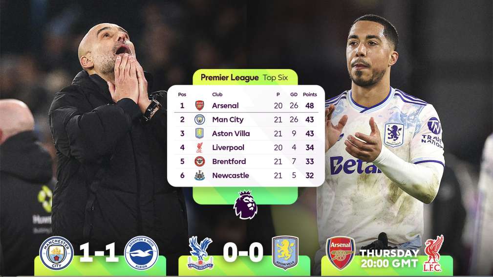 曼城、阿斯顿维拉两支有机会争夺本赛季英超冠军的球队,在7日的第21轮比赛中均遭遇平局,给了“领头羊”阿森纳队扩大榜首优势的机会。