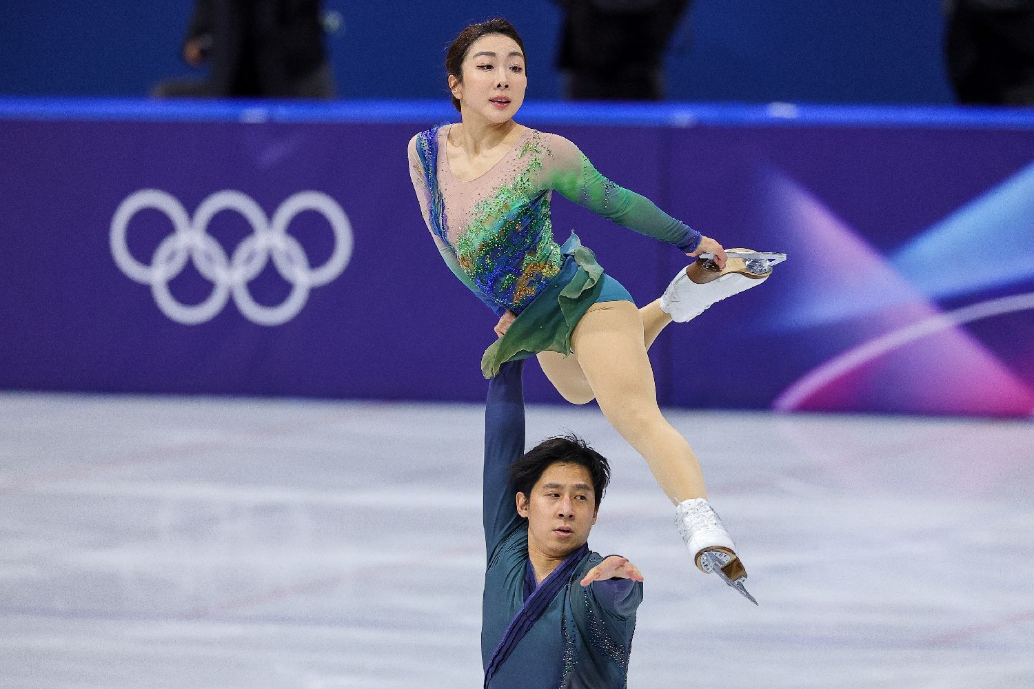 2月17日,隋文静(上)和韩聪在比赛中。中新社