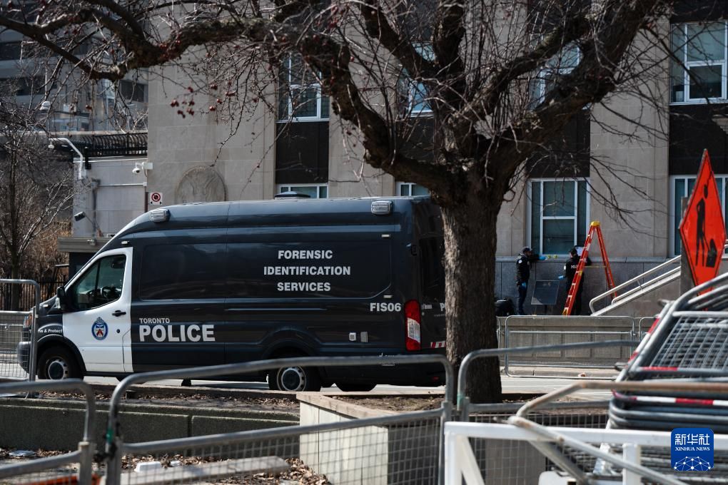 10日,警察在加拿大多伦多的美国驻多伦多总领馆外勘察。新华社