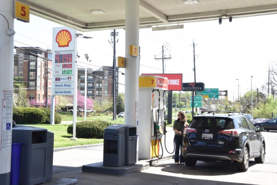 美国密歇根大学10日公布报告显示,美国4月消费者信心指数创70多年来最低值。美国民众在马里兰州罗克维尔一处加油站加油。中新社