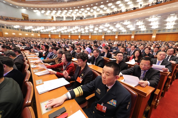 3月13日,中国十三届全国人大一次会议举行第四次全体会议。与会代表听取关于监察法草案的说明、关于国务院机构改革方案的说明。人民日报记者李舸摄