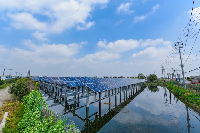 在湖州市南浔区,桑基鱼塘上架起了太阳能电池板,水上发电、水下养鱼。当千年桑基鱼塘邂逅光伏能源,展现出一幅和谐的生态图景。据介绍,国网湖州供电公司以“渔光互补”“农光互补”“屋顶光伏”等形式积极推动清洁替代,并做好清洁能源入网消纳。目前,湖州地区光伏总装机容量163.69万千瓦,光伏累计发电量40.97亿千瓦时。