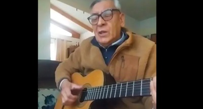 智利著名民俗音乐家埃尔南·亚历杭德罗·奥尔金·梅内。智利《国家报》网络截图