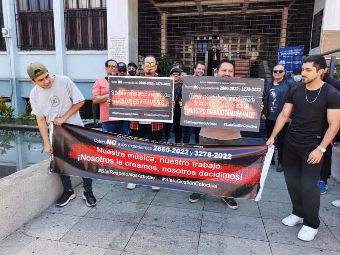 【南美侨报网编译门凌霄报道】9月6日,危地马拉一群音乐从业者在宪法法院(CC)门前发起抗议,拒绝删除《危地马拉版权及相关权法》第123条和第125条,因为删除后,他们将无法在自己的作品被电台和电视节目公开播放时收取版权费用。他们强调,此次抗议是他们在“为了自己的生存而战”。