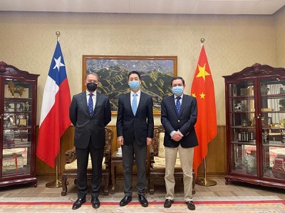 【南美侨报网编译李旋风报道】为更准确分析智利水果在中国的出口情况、更清楚了解中国新冠疫情现状和智利人赴华旅游条件,智利水果出口商协会(ASOEX)主席伊万·马兰比奥(Iván Marambio)与ASOEX总经理米格尔·卡纳拉-埃切维里亚(Miguel Canala-Echeverría)近日与中国驻智利大使牛清报会面。