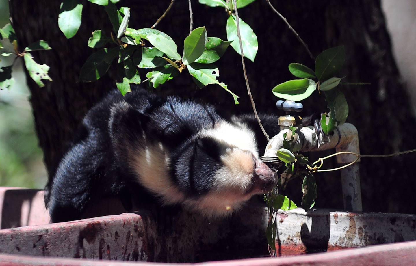 在水龙头喝水的“白脸卷尾猴”(Cebus capucinus)。哥斯达黎加《民族报》