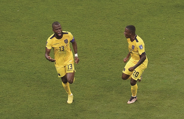 厄瓜多尔队队长瓦伦西亚(左)进球后庆祝。(网易体育)