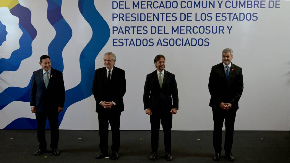 巴拉圭总统阿夫多·贝尼特斯(Mario Abdo Benítez,右一)出席南共市第61次首脑会议。巴拉圭《国家报》
