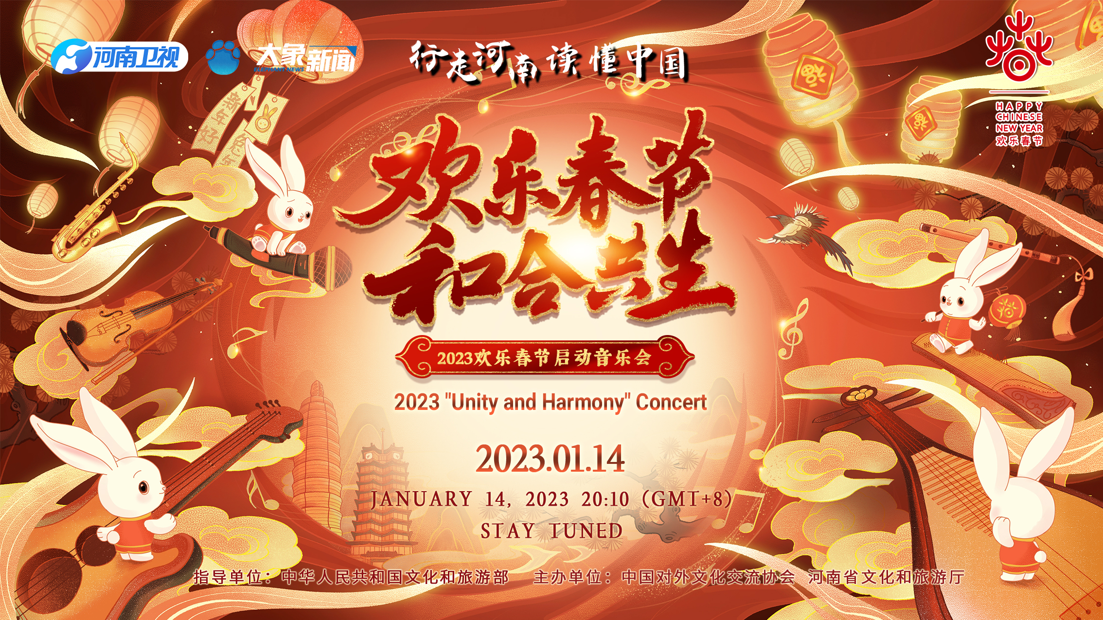 由中国文化和旅游部、中国对外文化交流协会、河南省文化和旅游厅合作出品的“欢乐春节 和合共生”2023年“欢乐春节”启动音乐会,将于1月14日在使馆新媒体官方账号平台进行全球直播。同时陕西省、江苏省、浙江省和甘肃省文旅宣传片和精彩的杂技剧和舞剧展演,也可从使馆新媒体官方账号点击链接收看。