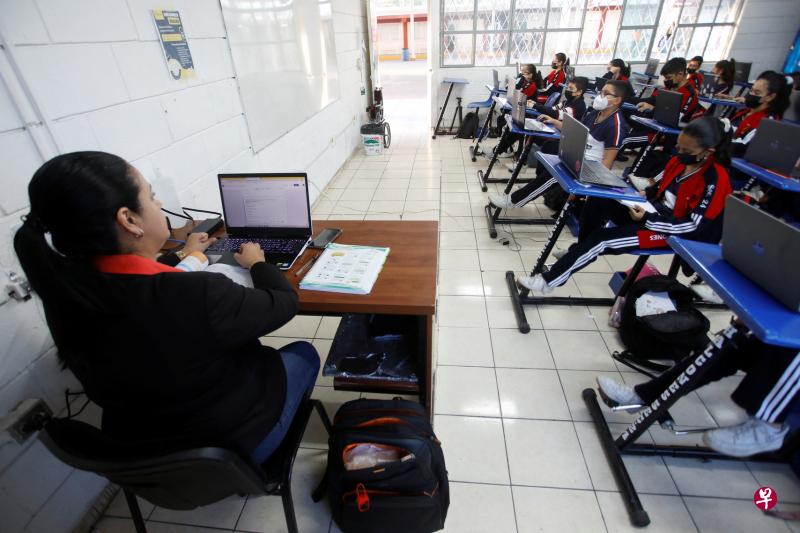 墨西哥一所学校配备的“自行车课桌”可以让人学习、运动两不误。新加坡《联合早报》