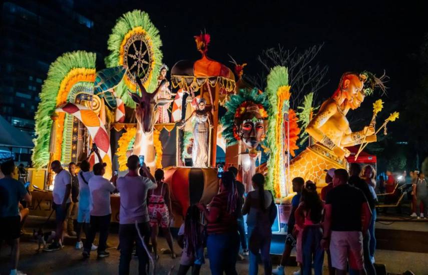 巴拿马城海滨大道(Cinta Costera, Ciudad de Panamá)的巡游花车。巴拿马《自由都会报》