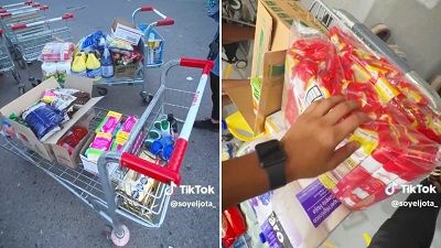 截至发稿,巴勃罗在TikTok上发布的相关视频已获得超9万点赞。视频中,他展示了至少2个装满商品的超市手推车,其中有40包面条、卫生纸、薯条和清洁用品。除此之外,他之前还将部分购买的食品放入汽车后备箱中。