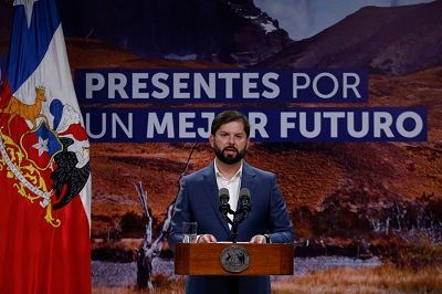 智利总统博里奇发表讲话。 智利Aton通讯社