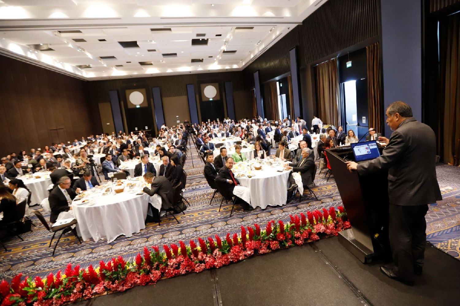 胡安·卡洛斯·马修斯(最右)介绍了秘中双边贸易成果。秘鲁《安第斯报》