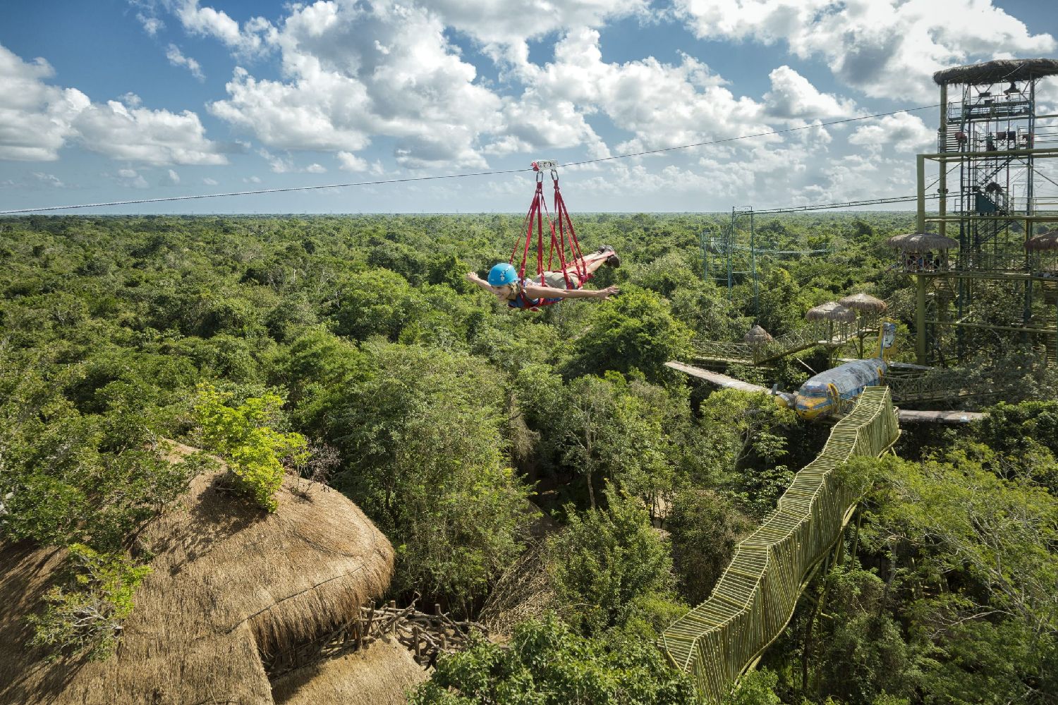 游客在莫雷洛斯港的丛林公园体验高空滑索。墨西哥“mexicorutamagica”网
