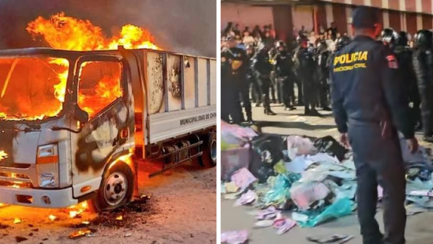 抗议人群烧毁了市政当局的卡车。危地马拉“Lahora”新闻网