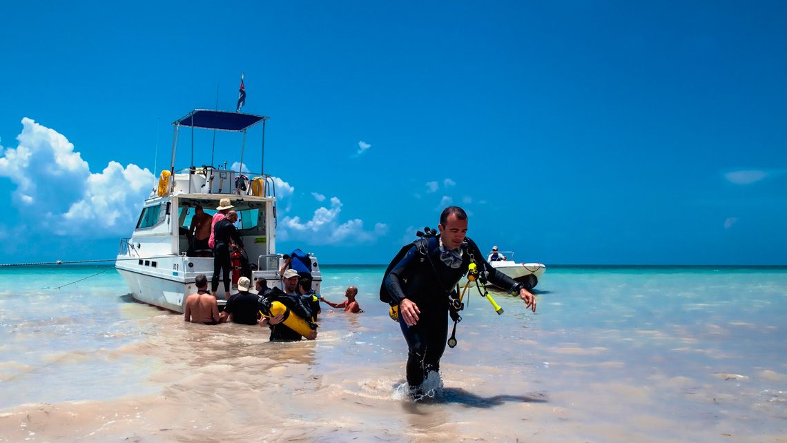 民众在青年岛准备进行潜水。古巴“excelenciascuba”网