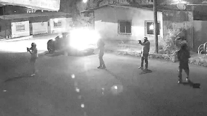 监控摄像头拍下的犯罪团伙持枪画面。哥伦比亚《国家报》