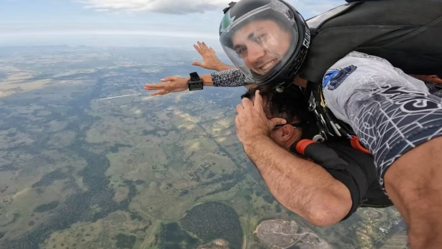 双人跳伞在教练的指导下进行。巴拉圭《国家报》