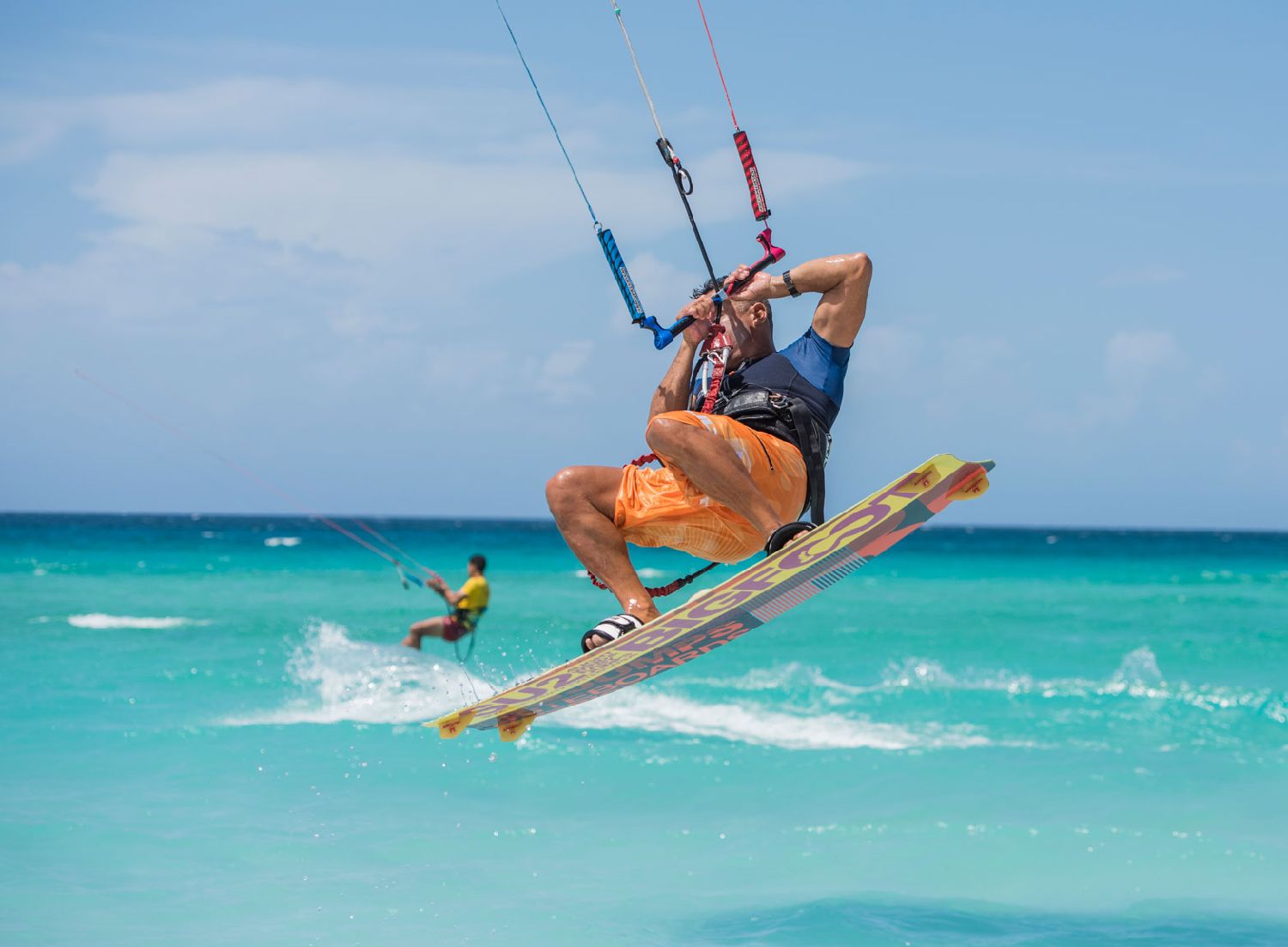游客在古巴海滩风筝冲浪。“excelenciascuba”网