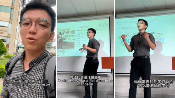 【南美侨报网编译肖怡然报道】近日,一名在秘鲁里卡多·帕尔马大学(U.Ricardo Palma)任教的中国汉语教师,因其在首堂课上向学生展示了会说7门语言的惊人能力,迅速走红社交媒体“TikTok”,网民们纷纷表示想报名参加他教授的课程。