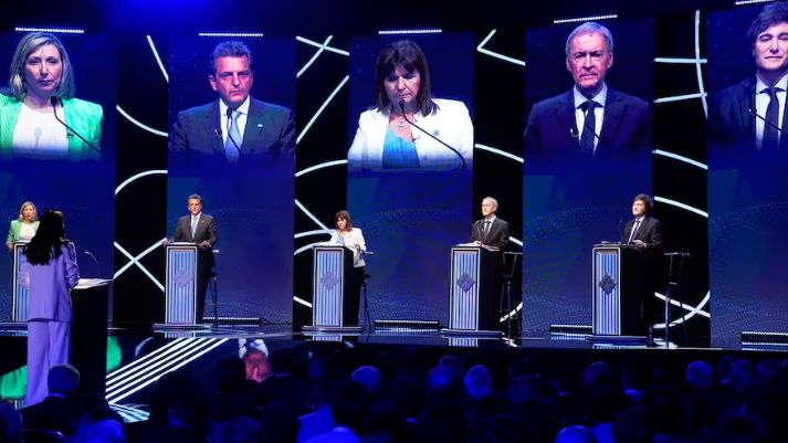 在10月1日举行的首场辩论中,五位总统候选人围绕经济、教育,以及人权和民主共存三个辩题进行了辩论。TN电视台公布的民调显示,米莱的得票率为43%,排在首位,其他总统候选人的得票率依次为:布尔里奇(22%)、马萨(18%)、希亚雷蒂(15%)、布雷格曼(2%)。