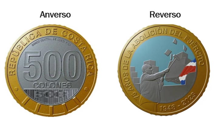 哥斯达黎加废除军队75周年纪念硬币。哥斯达黎加《民族报》