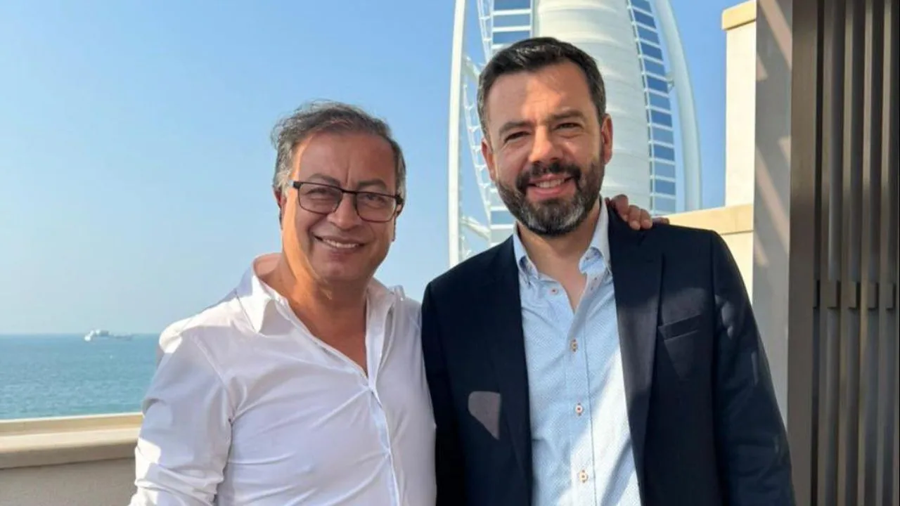 佩特罗在迪拜会见了近期当选波哥大市长的加兰(右)。哥伦比亚《周刊》