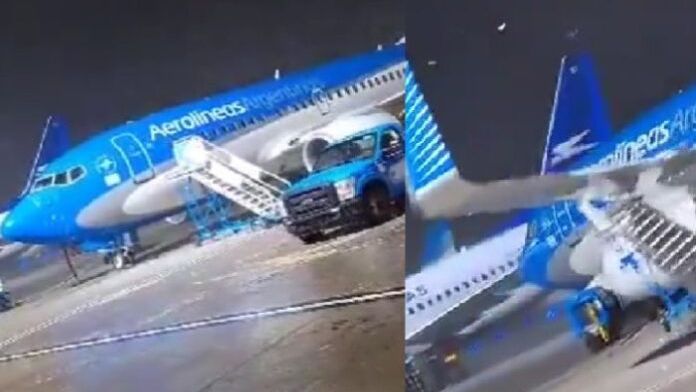 波音737-700飞机被强风吹动画面。阿根廷网站“elimpulso”