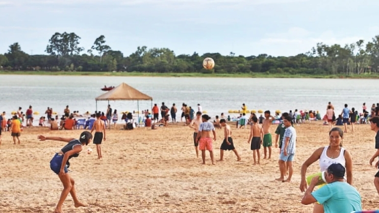 【南美侨报网编译边慧报道】巴拉圭库鲁·普库沙滩(TacurúPucú)是伊泰普湖(Itaipú,位于巴拉圭与巴西接壤地区)在巴拉圭一侧的唯一一个沙滩。近日,该沙滩成为了上巴拉那省(Alto Paraná)居民在炎热夏季就近消暑纳凉的选择。