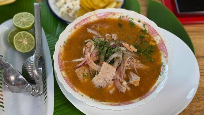 这道美味的菜肴在厄瓜多尔的各大市场、集市和餐馆都有售卖,它凭借出众的口味征服了数百万名游客的味蕾,在食用方法上,通常搭配芭蕉片(chifles)或面包一同食用。
