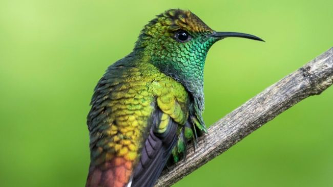 铜头丽蜂鸟是哥斯达黎加特有鸟类,平均体长仅7.6厘米,体重仅3克。雄鸟的冠和臀部为铜色,腹部为绿色;雌鸟腹部为白色。