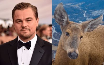 美国巨星莱昂纳多(左)关注智利马驼鹿生存状况。 智利《国家报》
