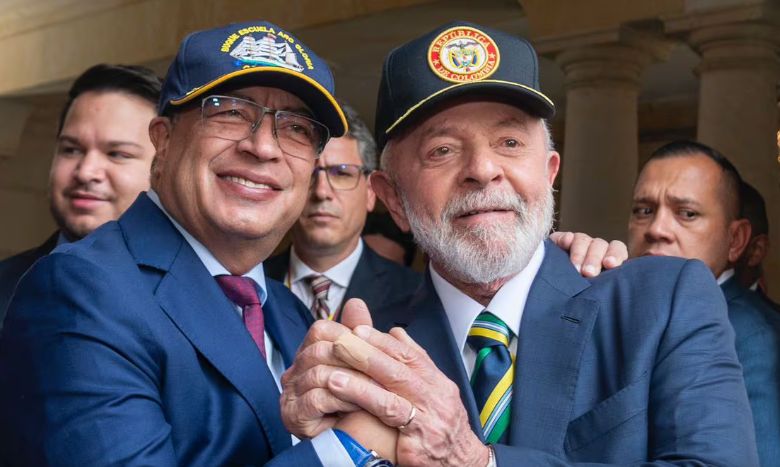 佩特罗(左)和卢拉在哥伦比亚首都会面。哥伦比亚《哥伦比亚人报》