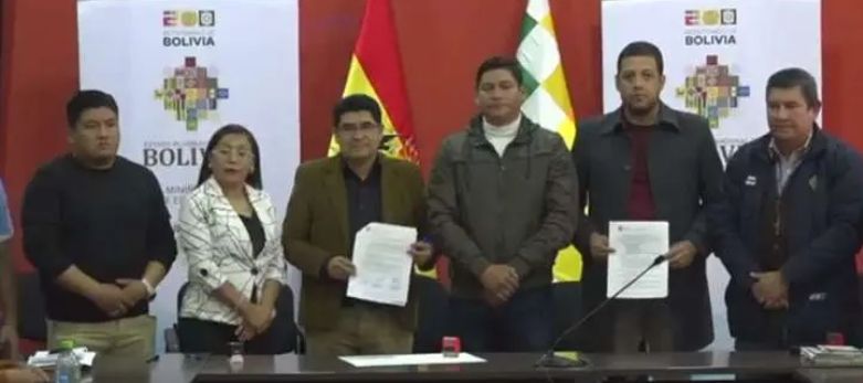 玻利维亚教育部和玻利维亚城市教育工作者联合会签署协议。玻利维亚《责任报》
