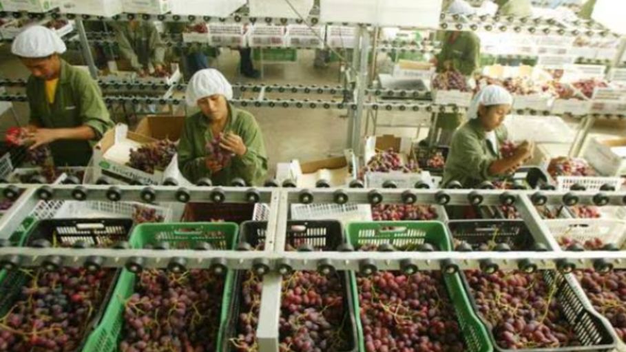 秘鲁一葡萄加工厂内,工人正在工作。秘鲁《经营报》