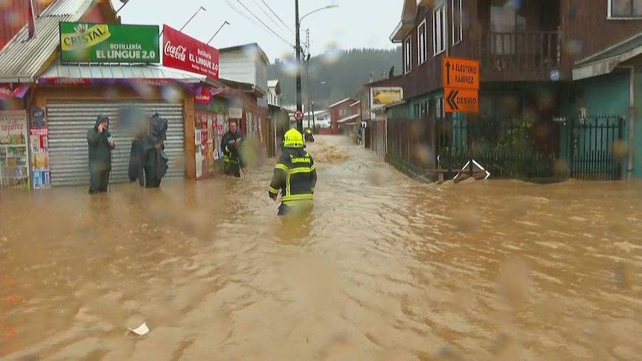 遭洪水侵袭的智利城镇。 智利国家电视台