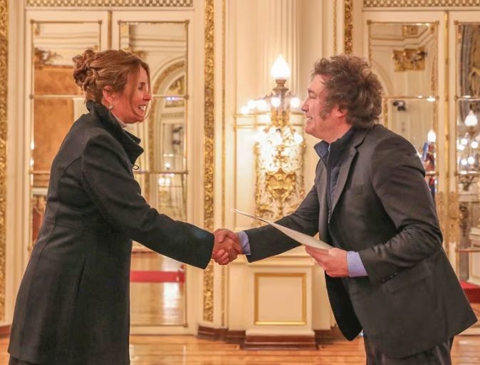 巴拉圭驻阿根廷大使海伦娜·费利普向阿根廷总统哈维尔·米莱递交国书。巴拉圭《国家报》