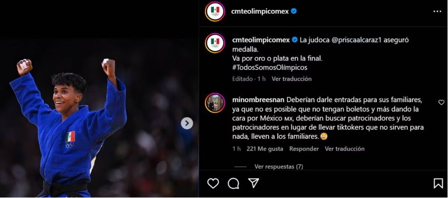 墨西哥《金融报》报道,阿维蒂·阿尔卡拉斯与来自斯洛文尼亚的选手安德烈亚·莱斯基(Andreja Leski)上演了一场激烈的金牌争夺战。在这场4分钟的对决中,阿维蒂·阿尔卡拉斯凭借“技有”(Waza-ari)技术的反击以1∶0领先。然而在比赛还剩约2分20秒时,她被对手的“一本”(ippon)技术击败。