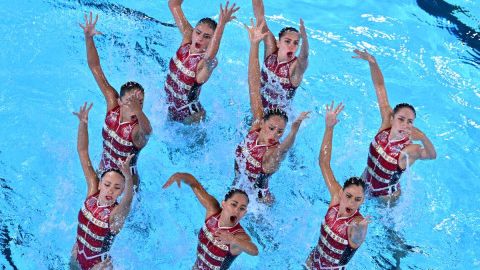 墨西哥选手在巴黎奥运会花样游泳集体技术自选中比赛。墨西哥《至上报》