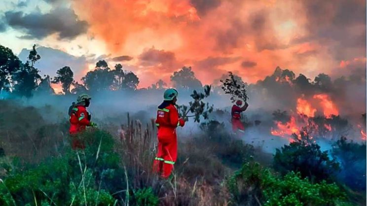 秘鲁消防员正在扑灭森林火灾。秘鲁《秘鲁人报》