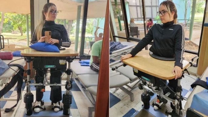 梅伦·迪亚兹·阿尔马格在进行站立训练。古巴网站“cibercuba.com”