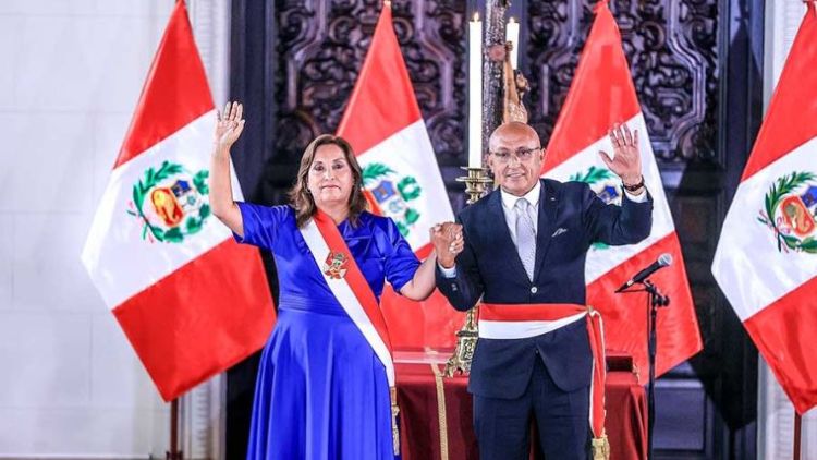 秘鲁总统迪娜·博鲁阿尔特(左)与内政部长胡利奥·迪亚兹·祖鲁埃塔(右)。秘鲁《秘鲁人报》