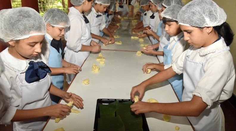 学生们亲手揉面制作奇帕面包卷。巴拉圭《最新时刻报》