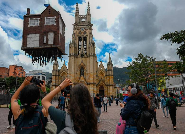 哥伦比亚《哥伦比亚人报》报道,波哥大市政厅介绍,这座“空中房屋”名为“连根拔起”(Arrancada de raíz),由艺术家莱安德罗·埃利希(Leandro Erlich)创作。房屋的外形参考了首都多个传统街区的经典房屋。这件艺术品目前陈列于卢尔德公园广场(Parque de Lourdes),该广场位于13号大道与63号街交汇处。